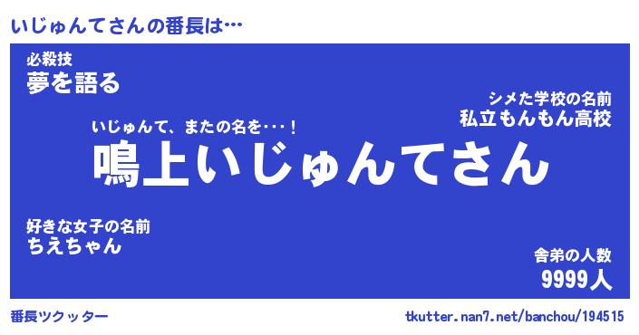 | 伝説のあだ名 | 『封印されしスナイパーいじゅんて』 |