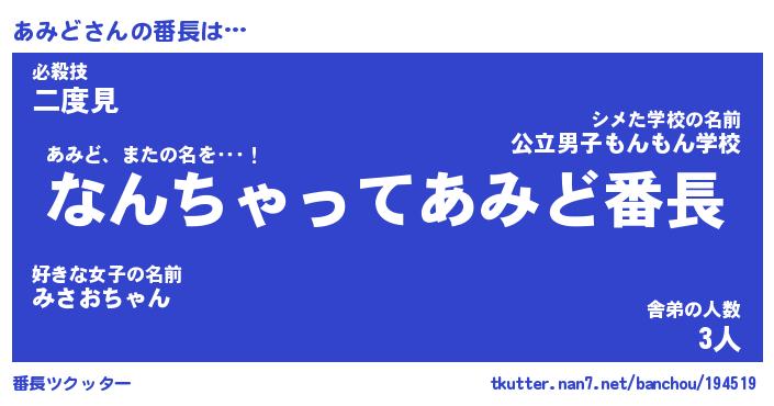 | 肩書あだ名 | 『あみど店長』『あみど総理大臣』 |