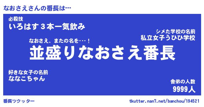 | ポケモン風あだ名 | 『ナオチュウ』『ナオサダネ』 |