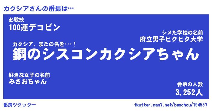 | 意味不明あだ名 | 『ペロリンカクシア』『永久保存カクシア』 |