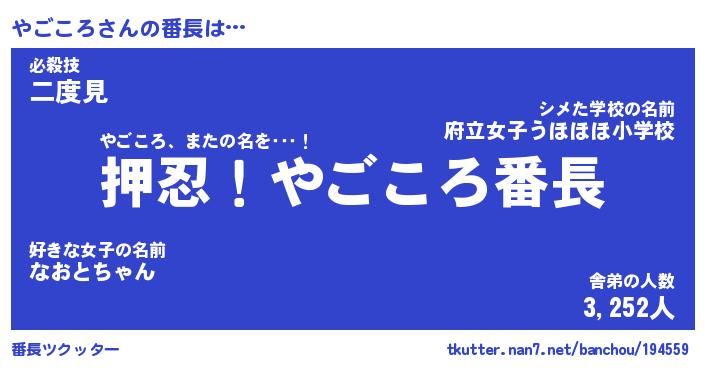 | 2回繰り返すあだ名 | 『やごやご』『ややごご』『ねちねち』 |