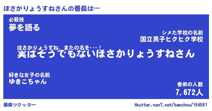 | 2回繰り返すあだ名 | 『ほさほさ』『ほほささ』『ぬるぬる』 |