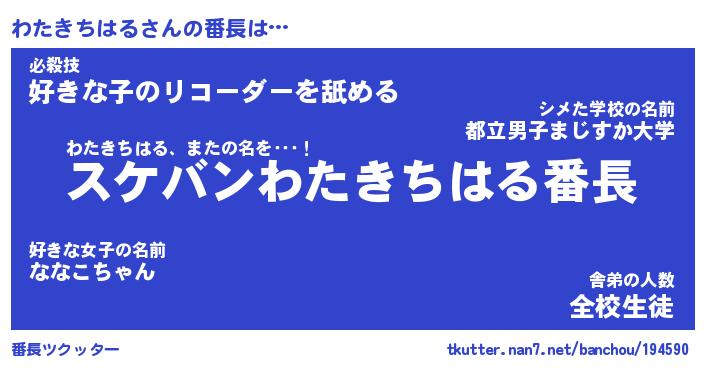 | 肩書あだ名 | 『わたきちはる御曹司』 |