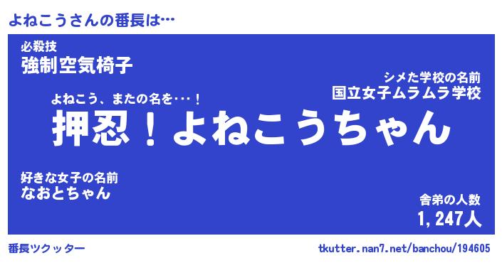 | ヘコむあだ名 | 『よねにー』『つくし』『よねを』 |