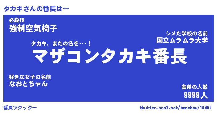 | ヘコむあだ名 | 『タカもー』『つくし』『タカを』 |