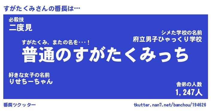 | ファンタジー風あだ名 | 『スガフェル』『エターナルスガタクミー』 |