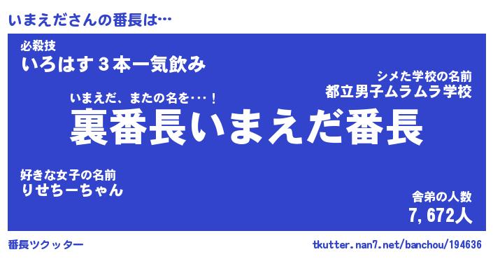 | ポケモン風あだ名 | 『イマチュウ』『イマエダネ』 |