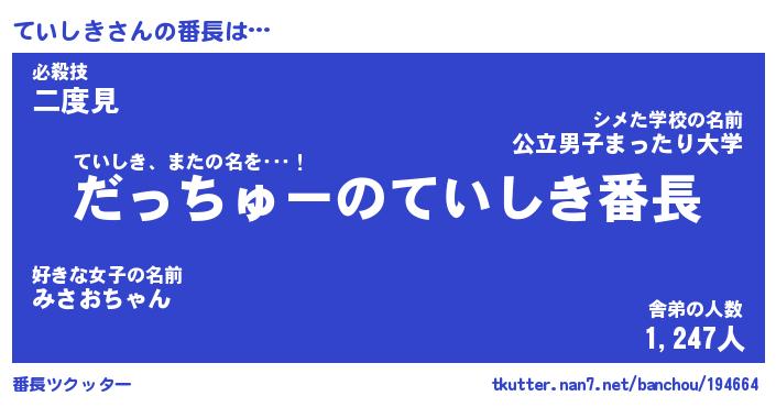 | ポケモン風あだ名 | 『テイチュウ』『テイシダネ』 |