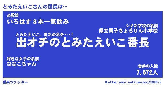 | ヒーロー風カッコイイあだ名 | 『スーパートミタエイコ』『炎刃騎士トミ』 |