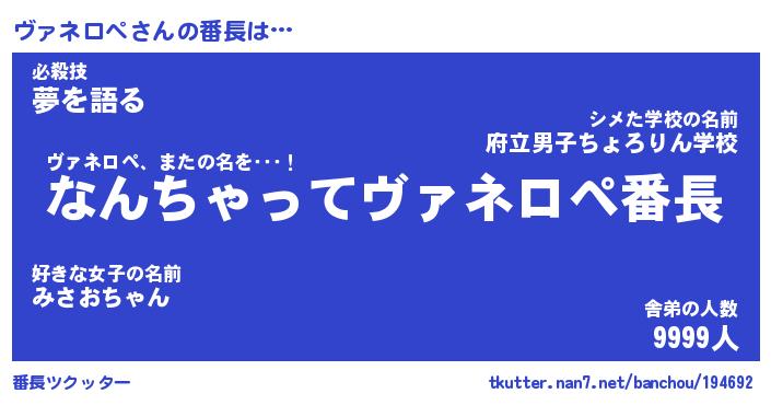 | 肩書あだ名 | 『ヴァネロペ社長』『ヴァネロペ大統領』 |