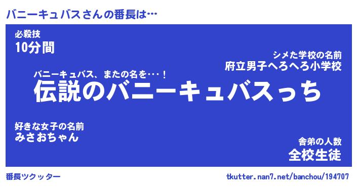 | ヒーロー風カッコイイあだ名 | 『スーパーバニーキュバス』 |