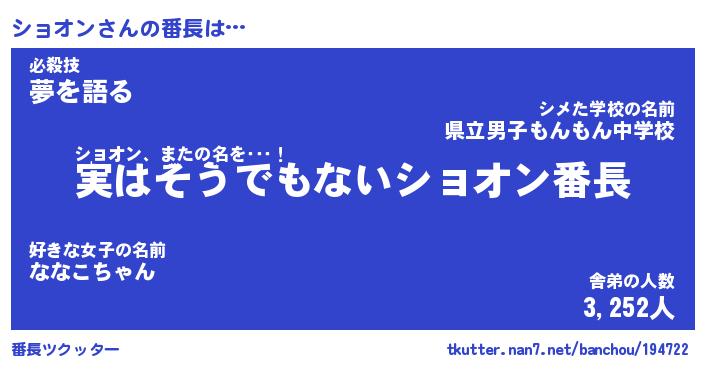 | 肩書あだ名 | 『ショオン店長』『ショオン大統領』 |