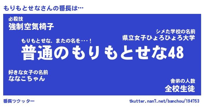 | ヒーロー風カッコイイあだ名 | 『スーパーモリモトセナ』『暗黒騎士モリ』 |