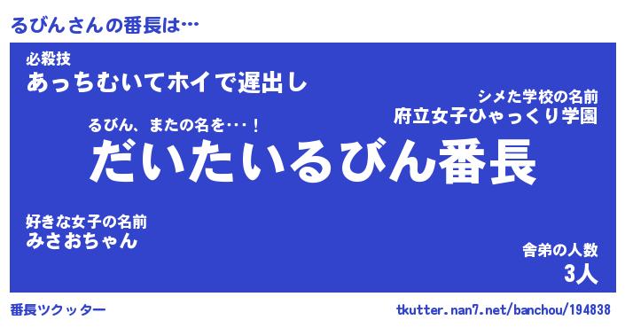 | ヘコむあだ名 | 『るびっふぃ~』『牛乳』『るび太郎』 |
