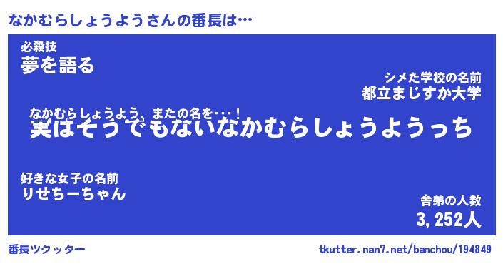 | 肩書あだ名 | 『なかむらしょうよう御曹司』 |