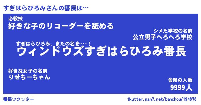 | ヒーロー風カッコイイあだ名 | 『スーパースギハラヒロミ』 |
