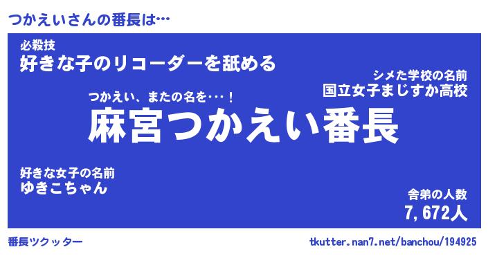 | 意味不明あだ名 | 『ペロリンつかえい』『永久保存つかえい』 |