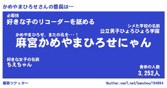| 肩書あだ名 | 『かめやまひろせCEO』 |