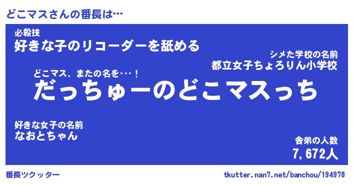 | 意味不明あだ名 | 『ペロリンどこマス』『永久保存どこマス』 |
