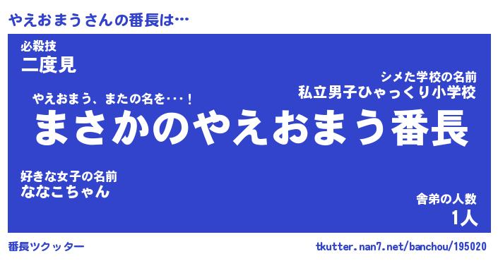 | 肩書あだ名 | 『やえおまう社長』『やえおまう総理大臣』 |