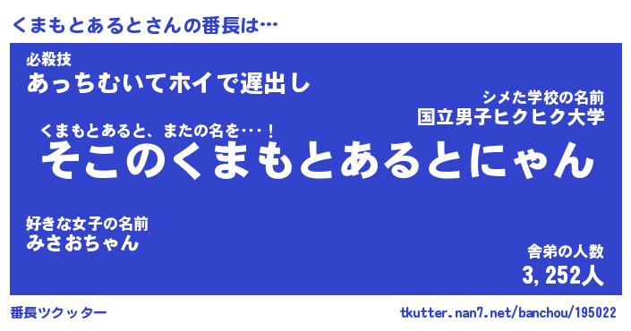 | 男性向けラノベタイトル風あだ名 | 『くまもとあるとの憂鬱』 |