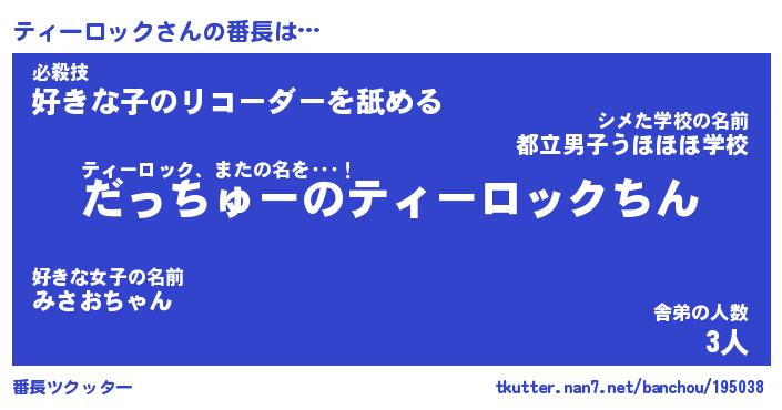 | 男性向けラノベタイトル風あだ名 | 『ティーロックの憂鬱』 |
