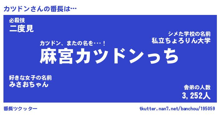 | 意味不明あだ名 | 『ペロリンカツドン』『永久保存カツドン』 |