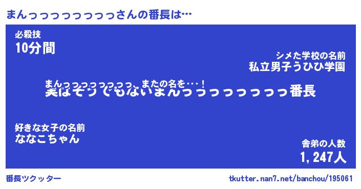 | 2回繰り返すあだ名 | 『まんまん』『ままんん』『ぎらぎら』 |