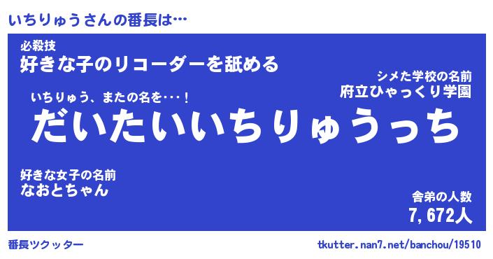 | 肩書あだ名 | 『いちりゅう店長』『いちりゅう国家主席』 |