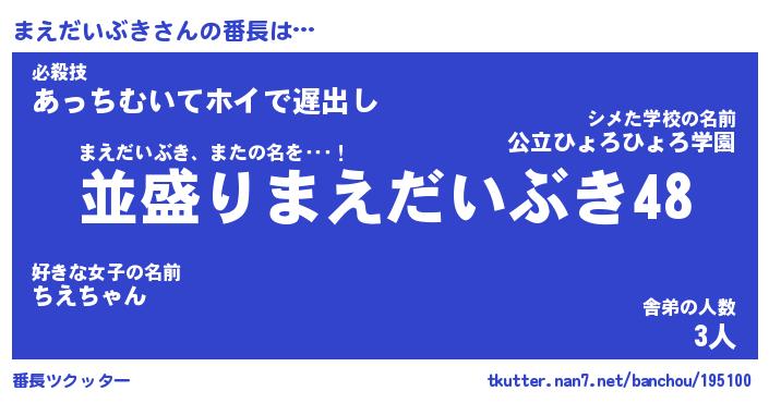 | 肩書あだ名 | 『まえだいぶき店長』『まえだいぶき先生』 |
