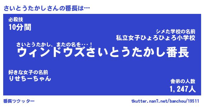 | 男性向けラノベタイトル風あだ名 | 『さいとうたかしの憂鬱』 |