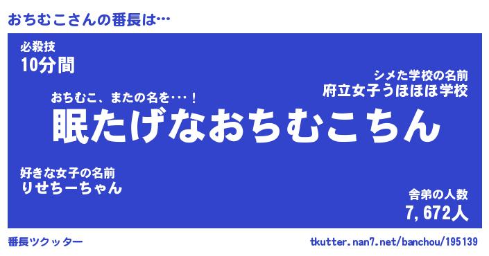 | 意味不明あだ名 | 『ペロリンおちむこ』『永久保存おちむこ』 |
