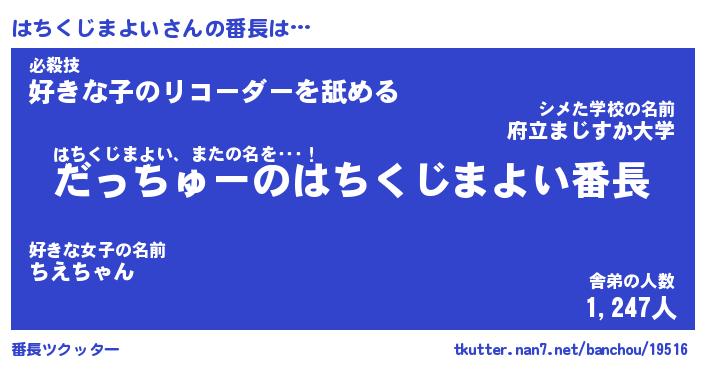 | 肩書あだ名 | 『はちくじまよい社長』 |