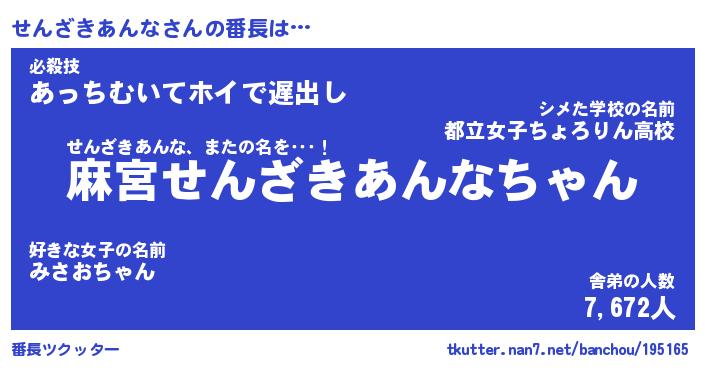 | 意味不明あだ名 | 『ペロリンせんざきあんな』 |