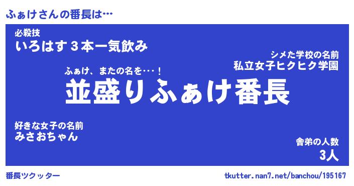 | 意味不明あだ名 | 『ペロリンふぁけ』『ふぁけフォーエバー』 |