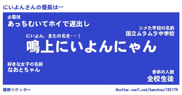 | 意味不明あだ名 | 『ペロリンにいよん』『永久保存にいよん』 |