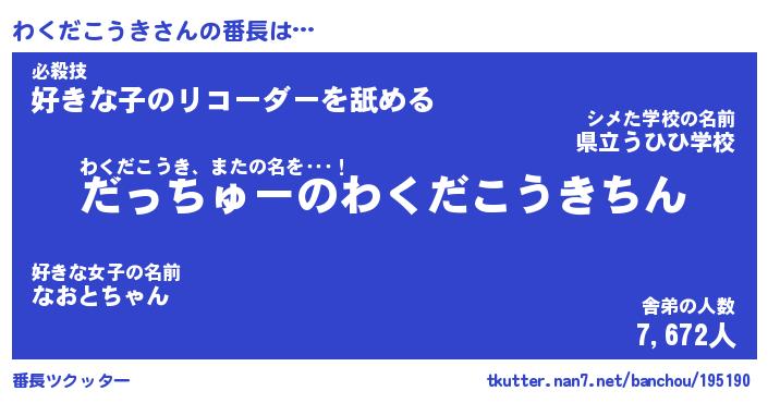 | 2回繰り返すあだ名 | 『わくわく』『わわくく』『ぬるぬる』 |