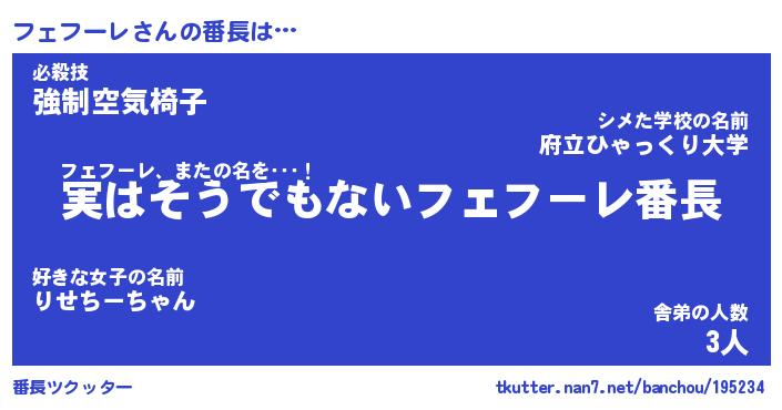 | ファンタジー風あだ名 | 『フェフェル』『エターナルフェフーレー』 |