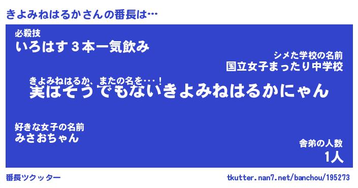 | 肩書あだ名 | 『きよみねはるか店長』 |