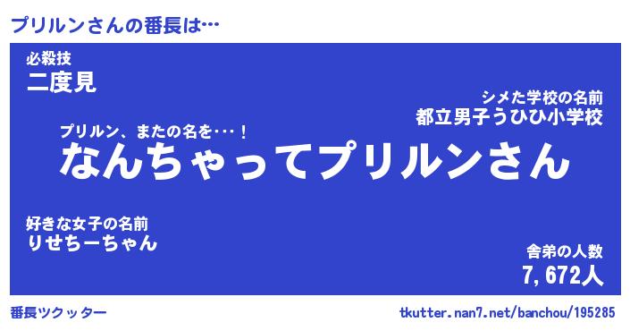 | 意味不明あだ名 | 『ペロリンプリルン』『永久保存プリルン』 |