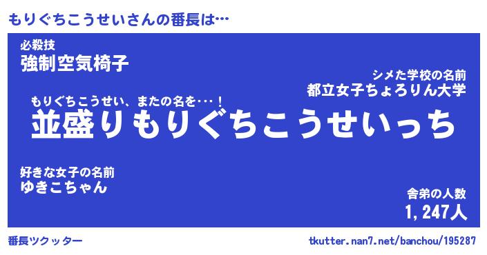 | ヒーロー風カッコイイあだ名 | 『スーパーモリグチコウセイ』 |
