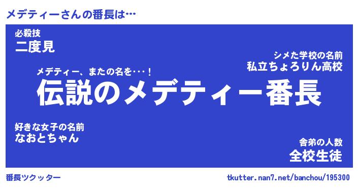| ポケモン風あだ名 | 『メデチュウ』『メデテダネ』 |