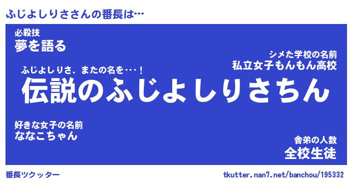 | ポケモン風あだ名 | 『フジチュウ』『フジヨダネ』 |