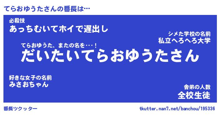 | 肩書あだ名 | 『てらおゆうた店長』 |