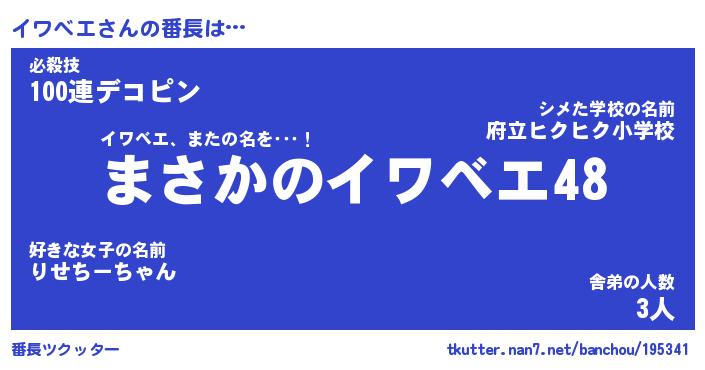 | ヒーロー風カッコイイあだ名 | 『スーパーイワベエ』『黄金騎士イワ』 |