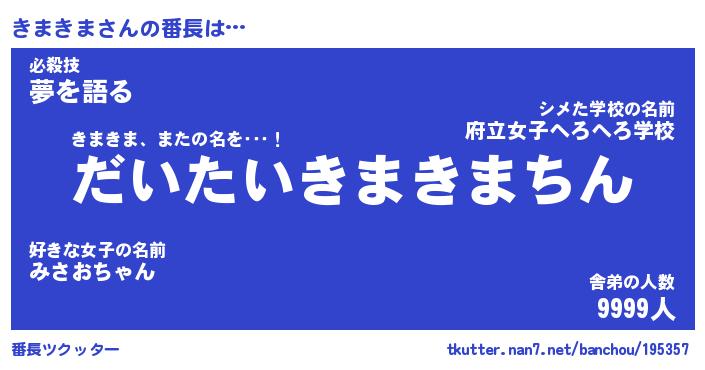 | 意味不明あだ名 | 『ペロリンきまきま』『永久保存きまきま』 |