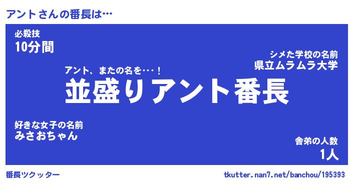 | ポケモン風あだ名 | 『アンチュウ』『アントダネ』 |