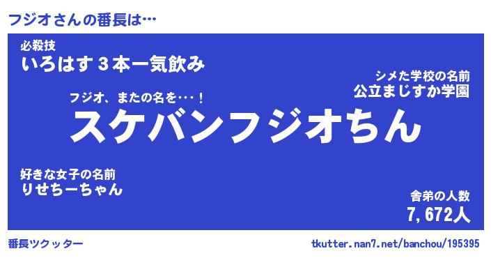 | 意味不明あだ名 | 『ペロリンフジオ』『フジオフォーエバー』 |