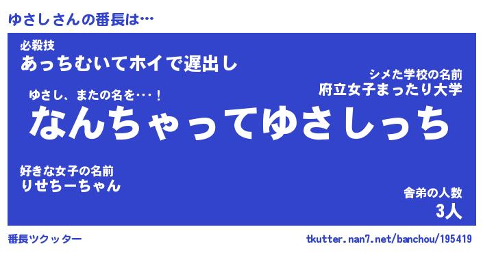 | ポケモン風あだ名 | 『ユサチュウ』『ユサシダネ』 |