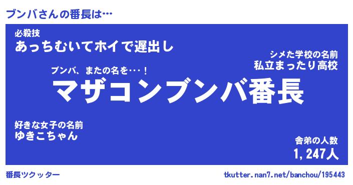 | ファンタジー風あだ名 | 『ブンフェル』『エターナルブンバー』 |